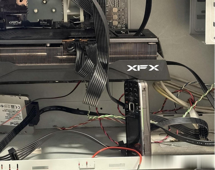 最近一位网友在论坛上展示他用一部老旧的诺基亚6120撑起显卡的照片,获得了大量网友留言调侃。可以看到这部老手机的高度,放在下方刚好把显卡撑起,感觉就像是专为此而设计。许多网友也在底下留言开玩笑说:“在这场对抗中显卡会先弯曲,但诺基亚不会”“要坏也是机箱或桌子先坏,但绝对不是Nokia”: